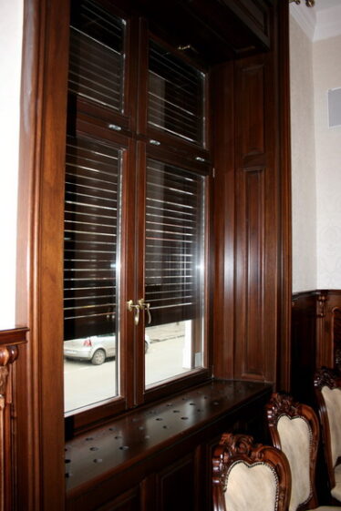 • Tamplarie din lemn masiv sau lemn stratificat pentru spatiu sediu firma, magazin, sala, restaurant, salon, clinica